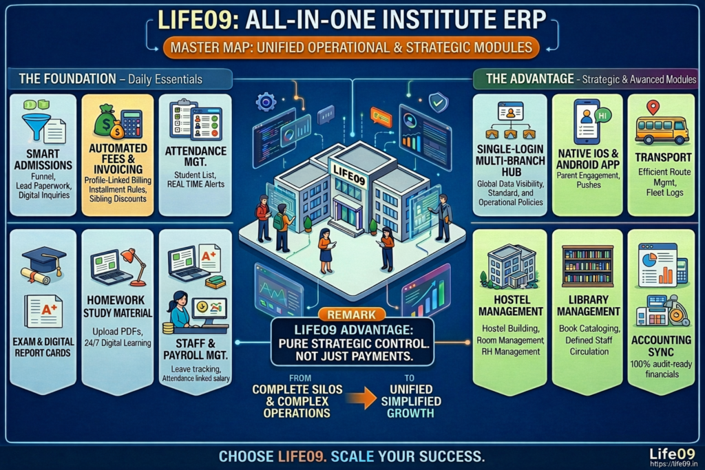 Elevate your institution with Life09 – the all-in-one, cloud-powered management platform designed for today’s dynamic schools and academies. Seamlessly streamline admissions, attendance, fees, and scheduling with intuitive tools that automate admin tasks, deliver real-time dashboards for student performance insights, and provide mobile-first access from any device. Scalable, secure, and built for all institutes with easy integrations like payment gateways.